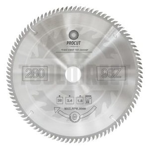 260x30x2.4/1.6 Z=96 PROCUT Пильный диск с пропилом ультратонкой разновидности для циркулярной или торцовочной пилы (работа по дереву, фанере и тонким видам пластика) 797.2603096F