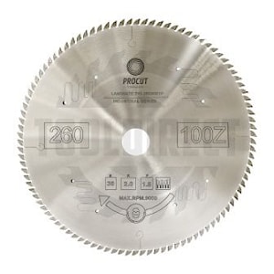 Пильный диск D=260x30x2.0/1.6 Z=100 2ATB+F по плексигласу, пластикам PROCUT артикул 783.2603001P