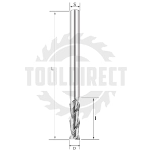 Фреза спиральная Z2 двухзаходная по алюминию, акрилу и композитным плитам ПВХ D=6x22x65 S=6 Rotis артикул 138.062265AL
