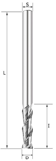Фреза спиральная Z2 двухзаходная по алюминию, акрилу и композитным плитам ПВХ D=12x30x75 S=12 Rotis артикул 138.123075AL
