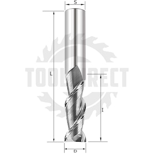 Фреза спиральная Z2 двухзаходная по алюминию, акрилу и композитным плитам ПВХ D=20x45x100 S=20 Rotis артикул 138.204500AL