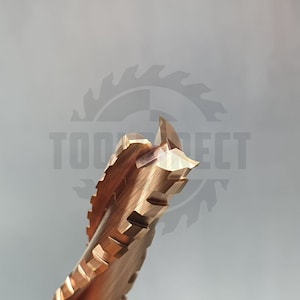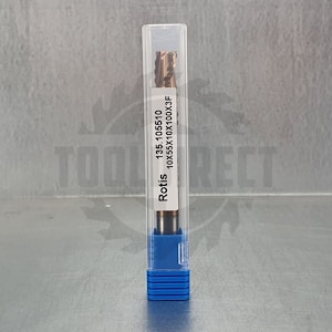 D=10x55x100 S=10 Rotis Фреза чистовая трехзаходная спиральной формы (дерево, ЛДСП, пластик, МДФ) Z3 (верхний рез) с чистовым стружколомом с покрытием TiSiN для ЧПУ станков 135.105510