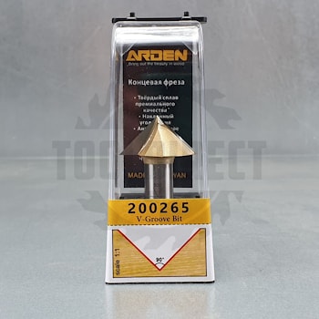 D=25.4x19x57 S=8 ARDEN арт.220831 Фреза (работы по пластику, дереву, ЛДСП, МДФ) конусной формы 60гр с верхним подшипником для ручного фрезера