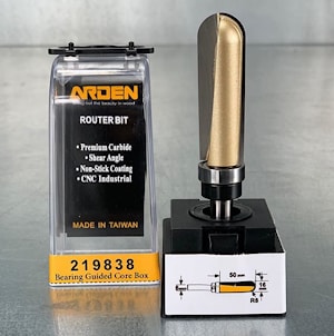 Фреза пазовая галтельная "Круглый нос" (пальчиковая) "Галтель" "Чаша" (верхний подшипник 706106) R=8 D=16x50x105 S=8 Z2 HW ARDEN артикул 219838