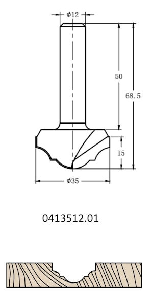 Фреза алмазная филёночная TD-041.35 D=35x15x68.5 S=12 Rotis 413512.01