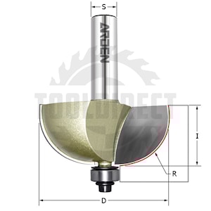 R=9.5 D=28.6x12.7 S=8 ARDEN арт.305831 Фреза (материалы: пластик, дерево, ЛДСП, МДФ) радиус внешний "Галтель" (нижний подшипник) для фрезера ручного Z=2