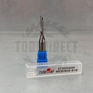 D=4x20x60 Z=1 S=8 Tideway Фреза форма спиральная однозаходный тип (материалы: дерево, МДФ, пластик, ЛДСП) Z1 (нижний рез) для станков с ЧПУ LC20204208