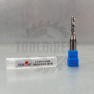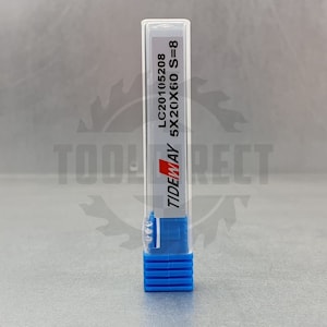 D=5x20x60 Z=1 S=8 Tideway Фреза тип спиральный однозаходная (подходящие материалы: МДФ, ЛДСП, дерево, пластик) Z1 (верхний рез) для станков с ЧПУ LC20105208