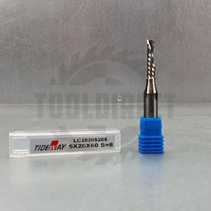 D=5x20x60 Z=1 S=8 Tideway Фреза спирального типа однозаходная (МДФ, ЛДСП, дерево, пластик) Z1 (нижний рез) для станка с ЧПУ LC20205208