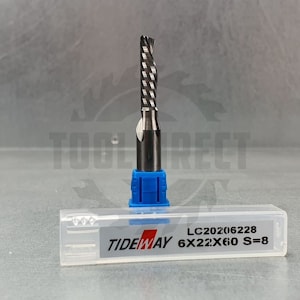 D=6x22x60 Z=1 S=8 Tideway Фреза спирального типа однозаходная (ЛДСП, МДФ, дерево, пластик) Z1 (нижний рез) для станка с ЧПУ LC20206228