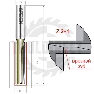 Фреза прямая пазовая с врезным зубом Z2+1 D=8x20x55 S=8 ARDEN