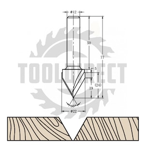 D=22x16x69 S=12 ROTIS Концевая фреза алмазного типа V-образной формы для станков с ЧПУ для обработки фасадов из МДФ TD-031 90° 312212.01