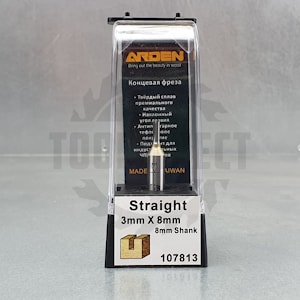 D=3x8x46 S=8 ARDEN арт.107813 Фреза (работа по пластику, ЛДСП, дереву, МДФ) прямой формы пазового типа для фрезера ручного монолитная Z=2
