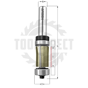 D=12x15x60 S=8 ARDEN арт.151816B Фреза (материалы: МДФ, ЛДСП, пластик, дерево) обгонная кромочного типа с угловым лезвием (нижний + верхний подшипник) для ручного фрезера Z=2