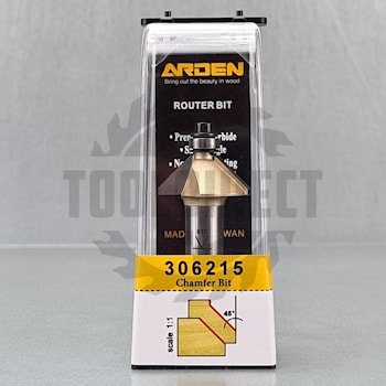 D=12.7x12.7x45 S=8 ARDEN арт.157831 Фреза (обработка МДФ, дерева, ЛДСП, пластика) для обгона, а также удаления фаски 45º (для ручных фрезеров и станков ЧПУ) Z=2
