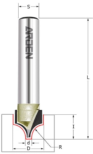 R=9.5 Z=2 D=31.7x16.7x55 S=12 ARDEN арт.209226 Фреза для работ с фасадами (обработка пластика, МДФ, дерева, ЛДСП) радиусного типа (псевдофилёнка) (для ручных фрезеров и ЧПУ станков)