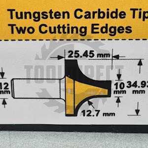 R=12.7 D=34.93x25.45x65 d1=10 S=12 ARDEN арт.213231 Фреза для обработки фасада (МДФ, ЛДСП, пластик, дерево) врезная радиусного типа (псевдофиленка) (для станка с ЧПУ или ручного фрезера)