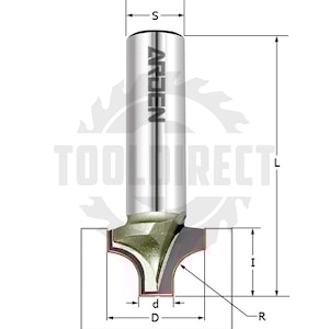 R=9.5 D=25.4x19.1x50 S=8 ARDEN арт.213821 Фреза для обработки фасадов (материалы: дерево, ЛДСП, МДФ, пластик) врезного типа радиусная (псевдофиленка) Z=2 (для ручных фрезеров и ЧПУ станков)