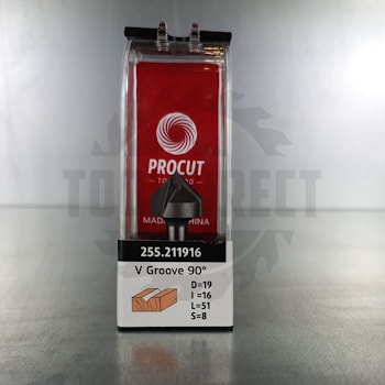 Фреза концевая пазовая конусная V-образная угол V=90° D=19x16x51 S=8 Z2 HW PROCUT