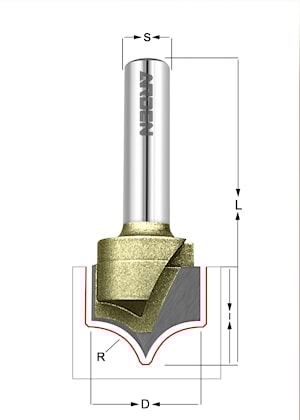 R=12.7 D=25.4x19.05x55 S=8 ARDEN арт.225861 Фреза для работы по фасадам (обработка дерева, пластика, ЛДСП, МДФ) со скруглением (для ручного фрезера или станка с ЧПУ)