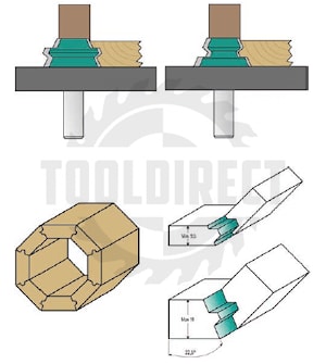D=37.3x22.2x55 S=8 ARDEN арт.604822 Фреза (МДФ, дерево, пластик, ЛДСП) для сращивания углового типа "Бочка" 22.5º для фрезера ручного